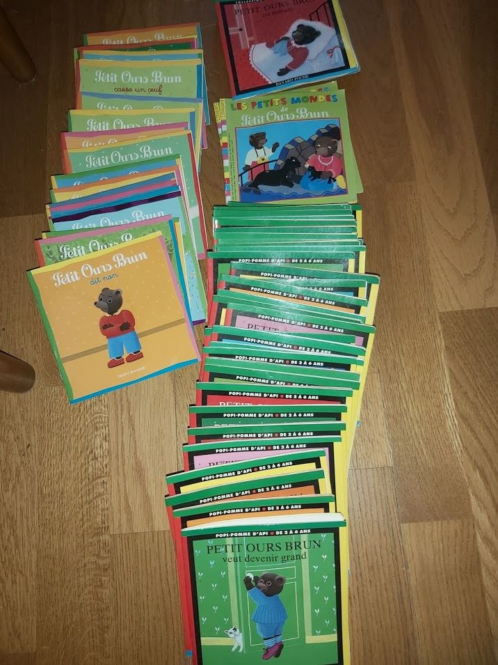 +inimaginable cette pile dingue d'au moins 100 petits livres PETIT OURS BRUN posés dans la rue, j'ai tout embarqué dans ma sacoche avec beaucoup de mal entassant dedans encore et encore!!!! Je garde quand je trouve des trucs gratuits depuis 10ans sur PETIT OURS BRUN même si c'est bébé car on regardait le dessin animé sur FR3 avec mon frère, j'avais quelques livres comme ça par ci par là récupérés partout mais jamais trouvé une pile pareille!