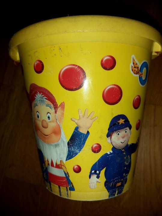 – Dans la rue où je trouve des trucs, ce samedi 31 juillet= magnifique seau vintage abimé de OUI OUI !