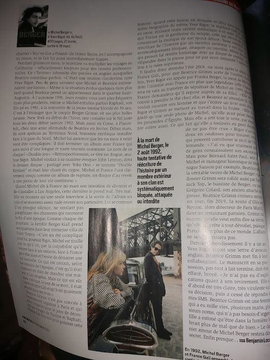 Je précise aux fans indignés que j'achète ce livre car eux vont encore le boycotter qu’il y a un beau cahier-photos (inédit) dedans dont une photo de Bigot à côté de France Gall à un match en 1986 et que j’achète / archive TOUT Michel Berger. Je n'ai pas à boycotter un livre avec une belle couv' et des belles photos dedans puisque j'archive tout Michel : livres, CD, vinyles, articles de presse…
