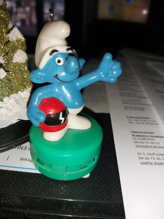 + 1 figurine désodorisant pour voiture SCHTROUMPFS! j’en ai une déjà des années 80 qu’on avait acheté à l’époque mais ne sachant pas si c’est la même j’ai repris…
