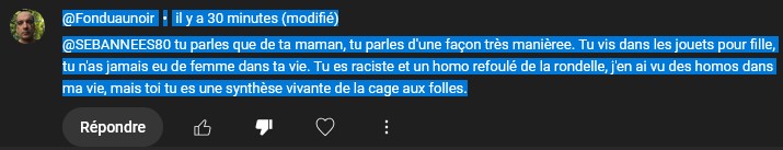 il vient de créer un nouveau compte FIORELLETTE une fois sur Youtube sur les commentaires il avait fait un compte SEBASTIENNE !!! il m’a fait une demande ami il est vraiment con je le bloque chaque fois direct