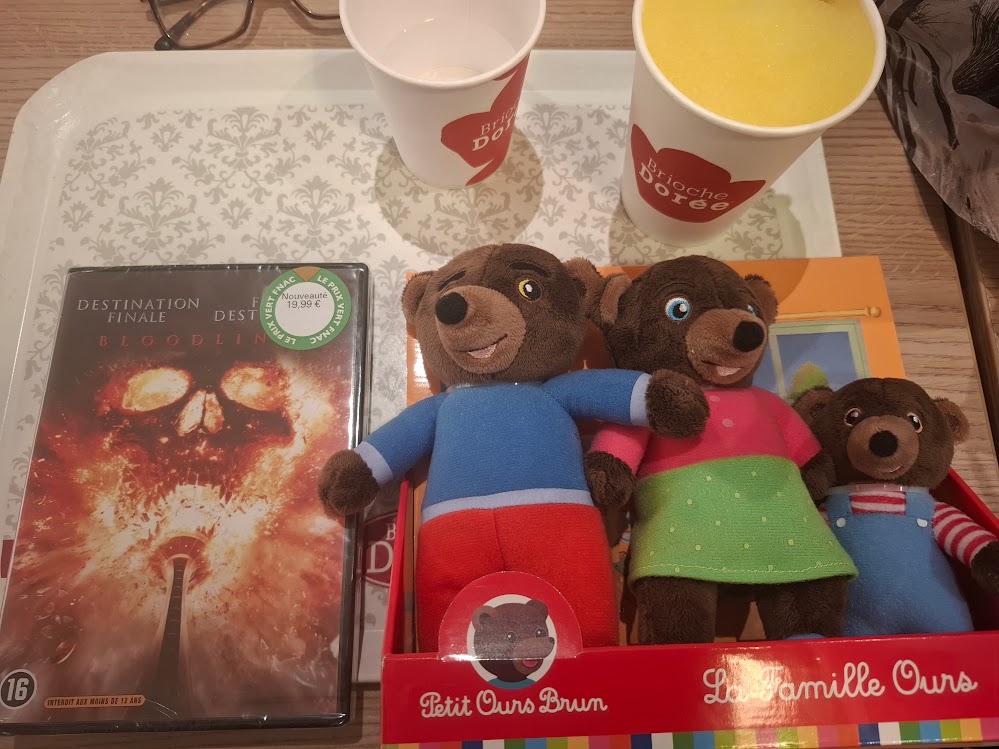 – incroyable alors que j’y étais la veille : sortie du nouveau DESTINATION FINALE que je n’ai pas vu en salle, j’ai pris le DVD pas le BLU pour essai et cette nouvelle histoire avec nouveau personnages est diabolique, gore et magistrale !!!