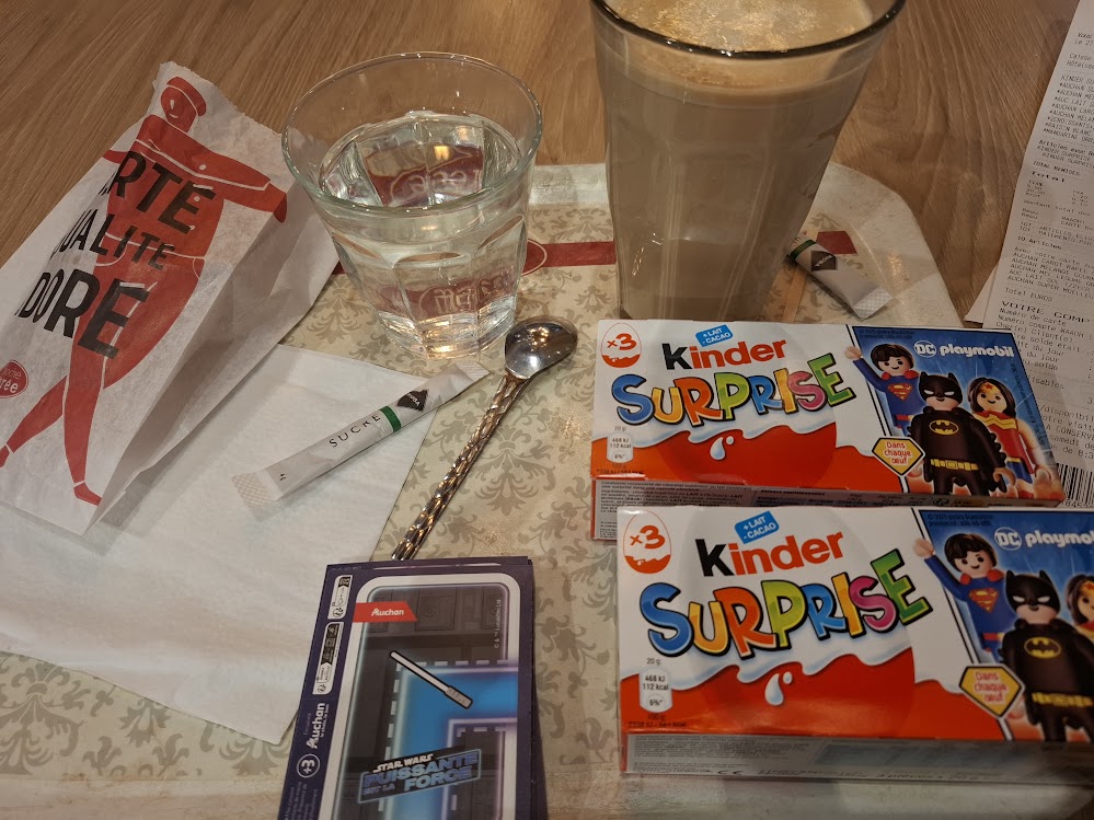 – KINDER j’ai finalement prix car promo pour lot de 2 boites des KINDER PLAYMOBIL mais ce sont des toutes petites figurines et je ne vois aucun gros PLAYMOBIL alors que mon abonnée Aurélie dit en avoir vu sur un groupe PLAYMO