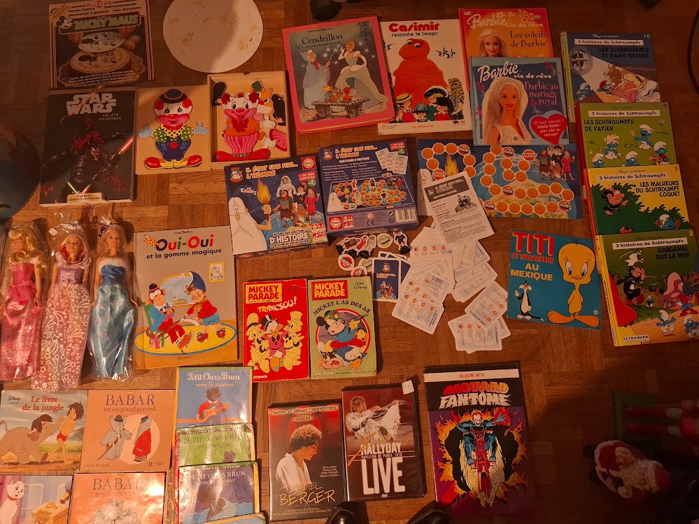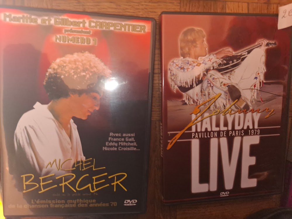 Jamais je n’avais trouvé autant dans cette petite brocante gratuite se déroulant dans une salle car quand j’arrive pour la première année la salle était à moitié vide ! Que de petites merveilles comme les DVD MICHEL BERGER scellé et JOHNNY en indien en concert 1979 pour 2euros chacun