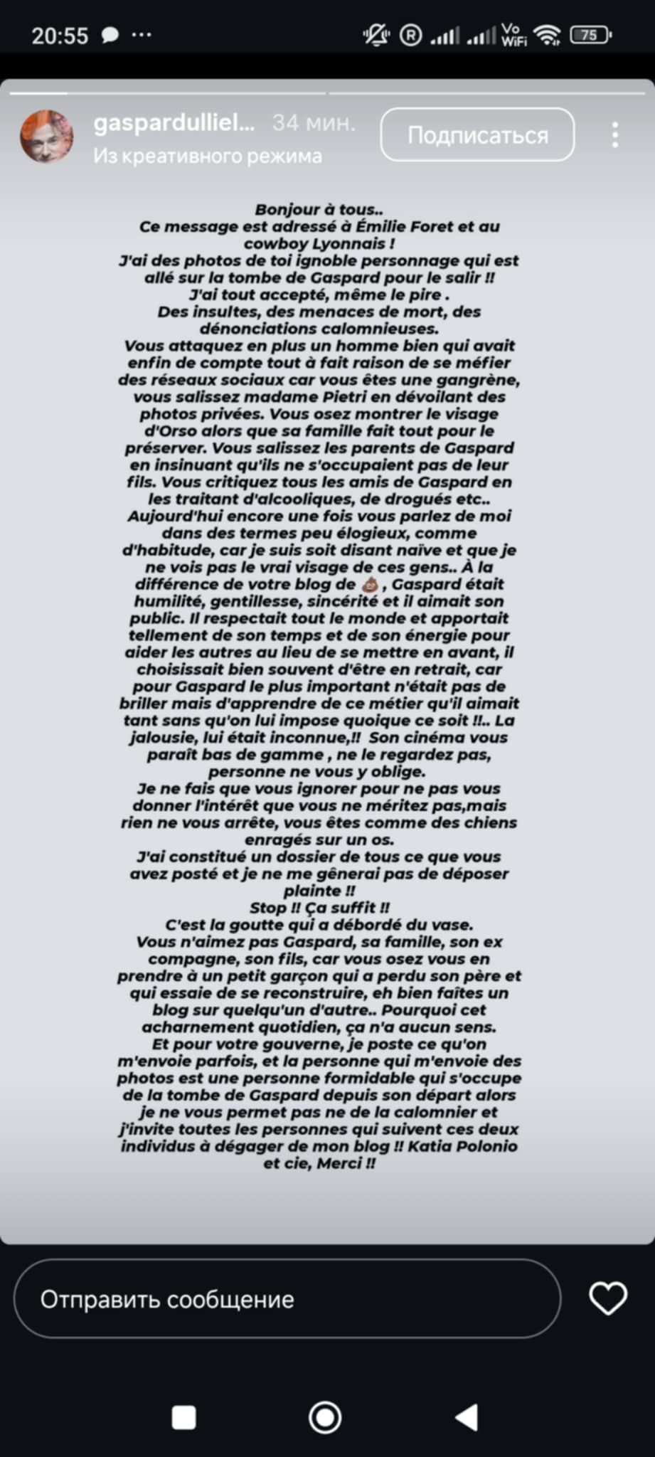 MENACES INSULTES de cette Marylou sur INSTAGRAM sur sa page hommage qu’on m’a envoyé en captures !