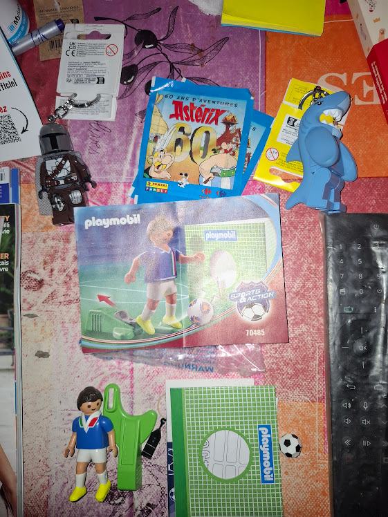 – 6 ASTERIX après avoir comparé avec ma liste écrite des BD qui me manquent et 2 LEGO porte-clés mais celui du STAR WARS je l’avais déjà !