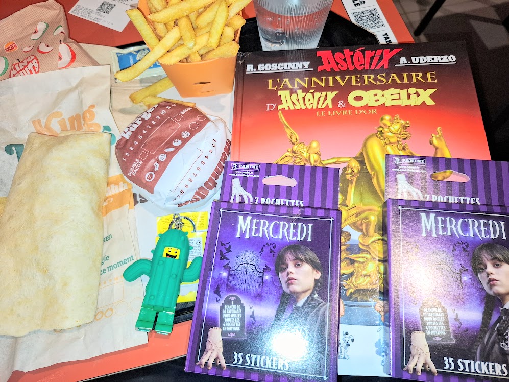 – 6 ASTERIX après avoir comparé avec ma liste écrite des BD qui me manquent et 2 LEGO porte-clés mais celui du STAR WARS je l’avais déjà !