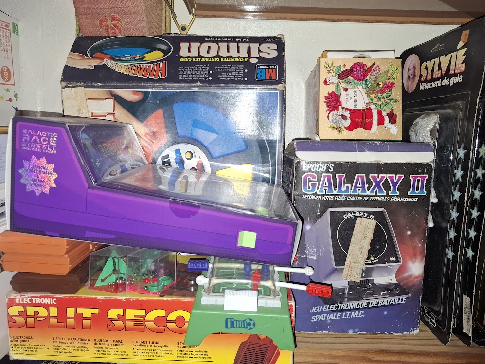 Simon et Merlin tout comme elle je les ai eu à Noël 1979 ainsi que le Galaxy 2 que j’ai eu j’ai tout racheté depuis en boites et joué des tas d’heures, voici des photos à moi de mes jeux présents chez moi en 2026 =