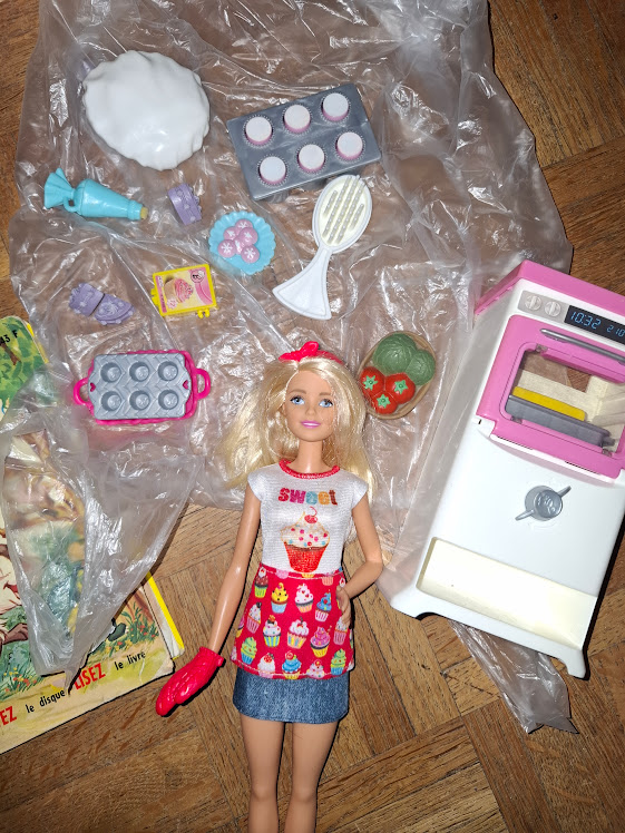 J’ai hésité pour la BARBIE; 2 femmes âgées arabes venaient d’acheter devant moi 2 belles BARBIE blondes que je voulais qu’elles ont fermement négocié à 3euros le lot des 2 alors que la vendeuse était pas cher = 3euros pour cette BARBIE pâtissière 2015 calendrier de l’avent elle m’a dit avec accessoires mais quand je cherche sur Internet je ne trouve pas cet objet !